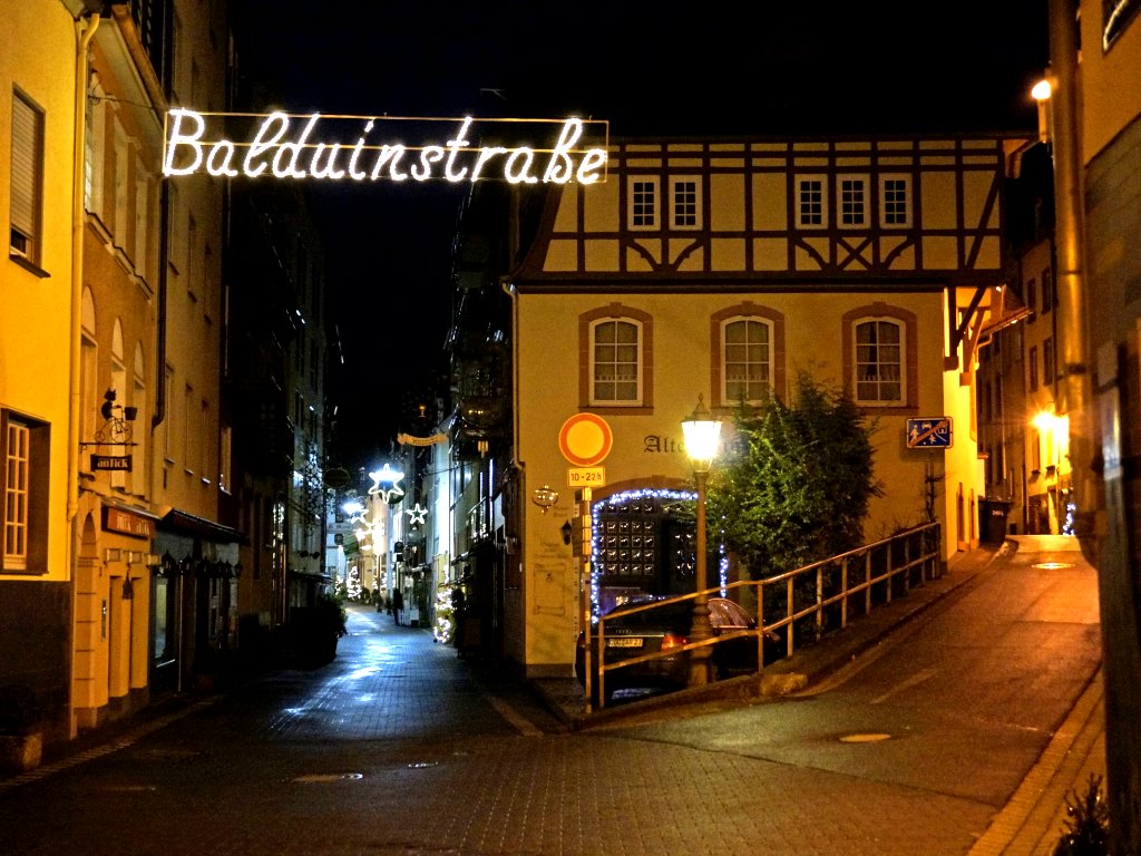 "Zell Balduinstr. weihnachtlich bei Nacht" von Peter Latz, www.moselbild.de